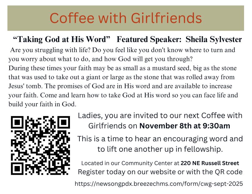 Sign up today for our next Coffee with Girlfriends. Registration is required so we can plan for food. Take a moment and sign up today. Sign-up for CWG