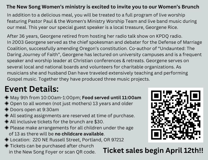 Sign up today for our next Coffee with Girlfriends. Registration is required so we can plan for food. Take a moment and sign up today. Brunch Tickets